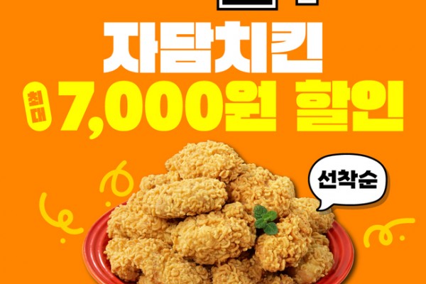 자담치킨이 신메뉴 ‘뿌슐랭치킨’ 출시를 계기로 할인 프로모션..