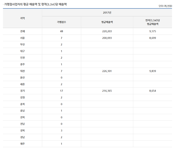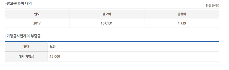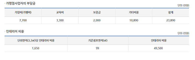 | 가맹비(천원) | 5500 | 로열티(천원) | |