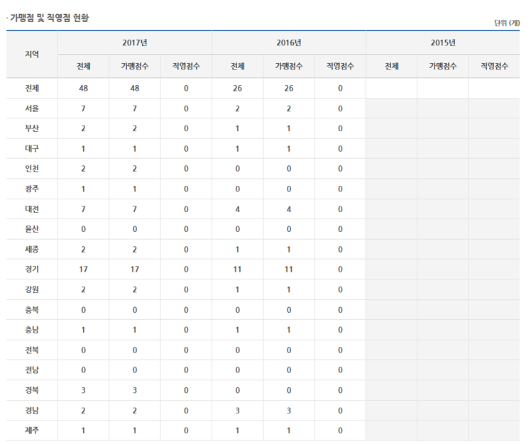 | 가맹점수 | 26 | 직영점수 | 0 |