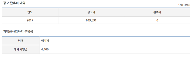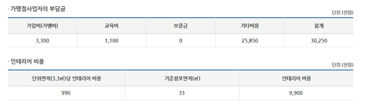 | 가맹비(천원) | 3300 | 로열티(천원) | |