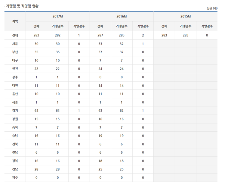 | 가맹점수 | 0 | 직영점수 | 0 |